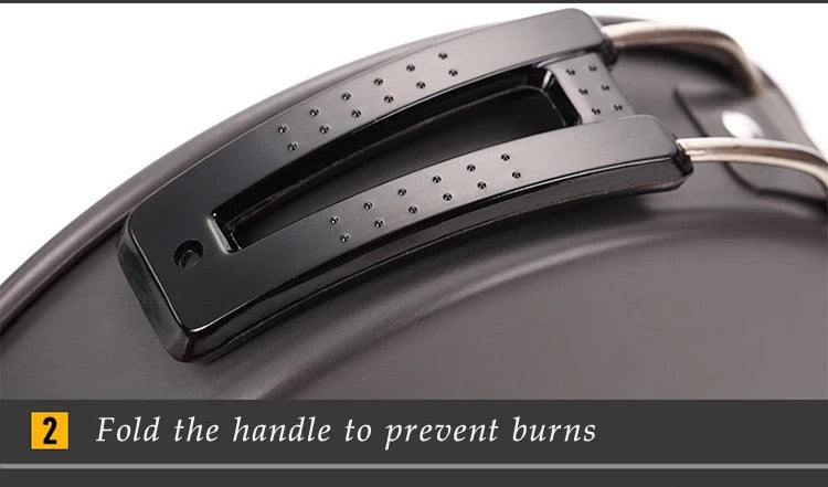 • All-purposed Outdoor Cooking Set:Non-stick pan for frying food;High capacity pot with lid for boiling water or soup(Pan/pot have long and heat-resistant handles to fold out to cook);Reusable spoon and bowls,wooden spatula and cleaning kit to provide a perfect breakfirst/lunch/dinner for your trip.
