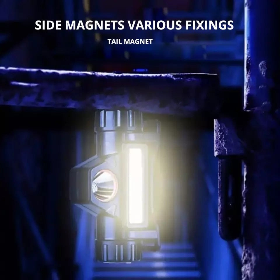The detachable torch has a magnetic cap, can be used to carry small tools or sticked to a metal surface used as work light.